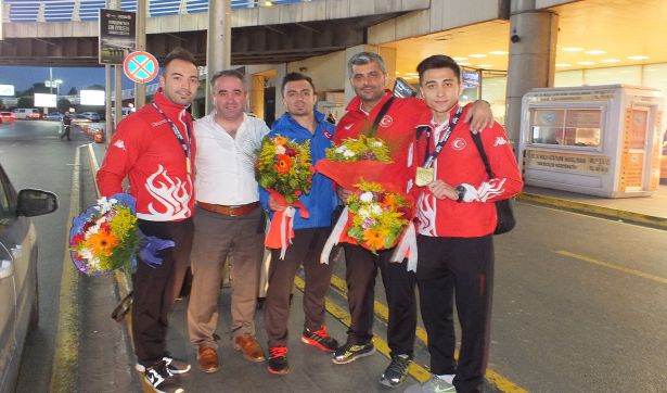 Fransa’da yapılan Avrupa Karate şampiyonasında, Avrupa üçüncüsü olan kata milli takımımız yurda döndü. Milli takım kafilesiyle birlikte Türk Hava Yollarının tarifeli uçağıyla, Atatürk Hava alanına gelen Kocaeli Büyükşehir Belediye Kağıtspor’un başarılı katacılarını, kulüp yöneticileri karşıladı. Karşılamada Büyükşehir Kağıtsporlu karateciler Mehmet Yakan, Osman Evin ve Fikret Yılmaz’la birlikte milli takım antrenörü İbrahim Erçin’de yer aldı. Çiçeklerle karşılanan karatecileri, Kocaeli Büyükşehir Belediye Kağıtsporlu yöneticiler Avrupa’daki başarılarından dolayı kutladı.