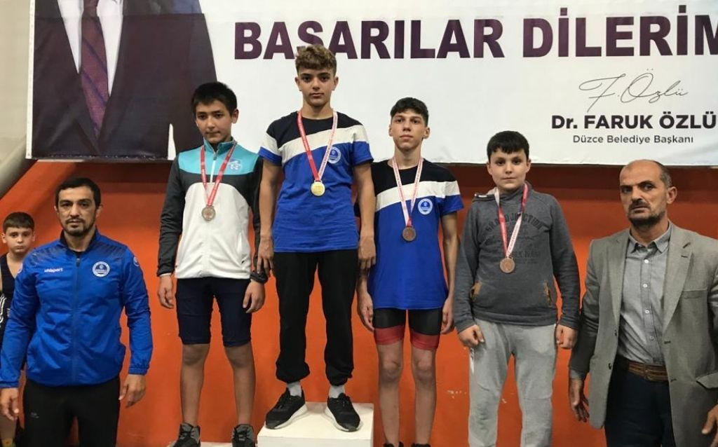 Düzce’de gerçekleştirilen iller arası Nurettin zafer güreş turnuvasında Yıldızlar kategorisinde 51 kilogramda Can Altun 1.61 kilogramda Abdullah Duman 2.