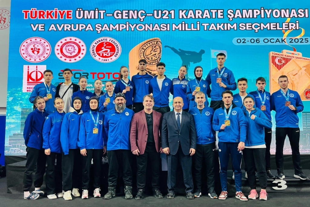 Ankarada yapilan Türkiye Ümit Genç U21Karate Şampiyonası yapıldı. Şampiyonayı 6 Altın, 4 Bronz, Toplam 10 Madalya ile kapatan Karatecilerimiz, 6 Finalin 6 sınıda kazanıp GENEL Klasmanda bir kez daha TÜRKİYE ŞAMPİYONU olmuştur. Teknik Ekibimizi ve Sporcularımızı cani gönülden tebrik ediyoruz.